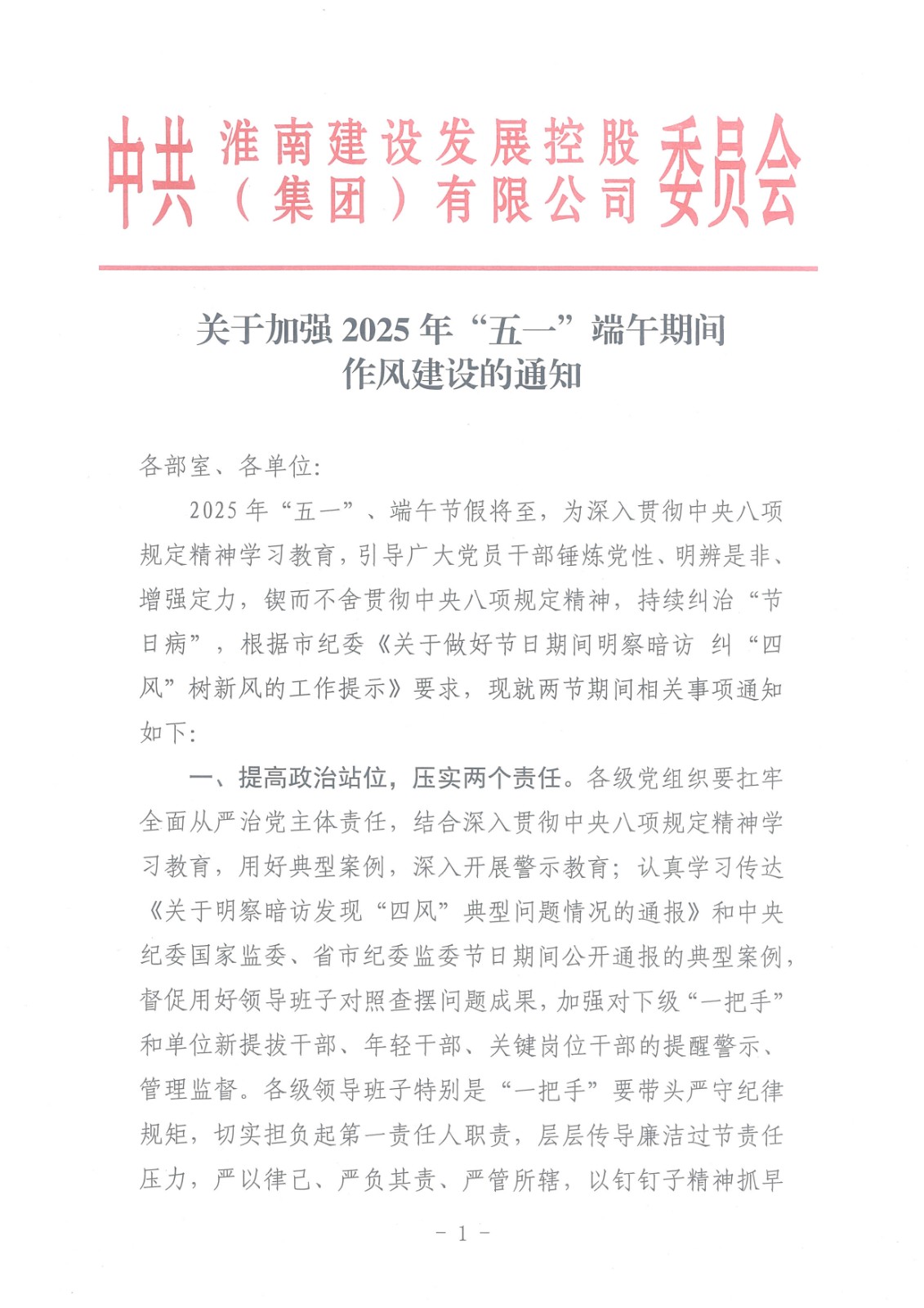 關(guān)于加強2025年“五一”端午期間 作風(fēng)建設的通知