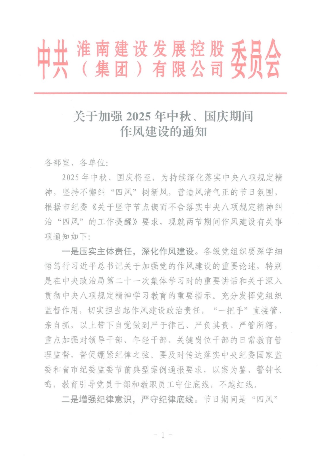 關(guān)于加強2025年中秋、國慶期間 作風(fēng)建設的通知